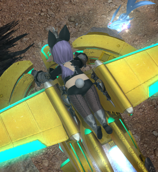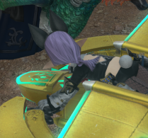 ロング系髪型のララフェルでアイランド・アリゲーターに乗ると髪の毛が不自然にめり込む