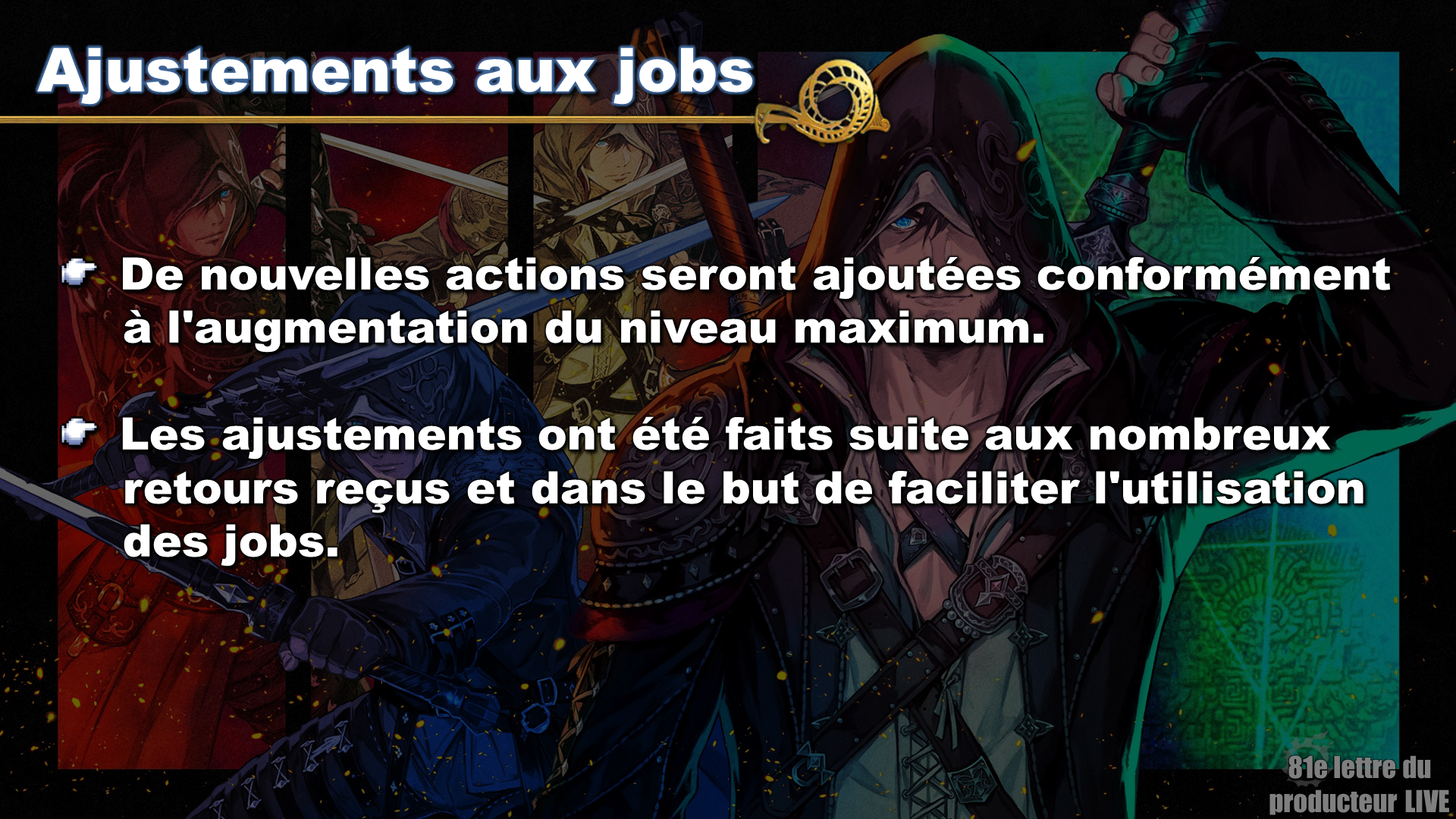 Toute la série 7.x nous permettra de nous concentrer sur l'organisation du maniement de chaque job ainsi que sur la satisfaction de jouer le job et la place laissée à l'inventivité des joueurs pour nos contenus. L'extension qui suivra Dawntrail sera peut-être le moment où nous accorderons plus d'individualité à chaque job.