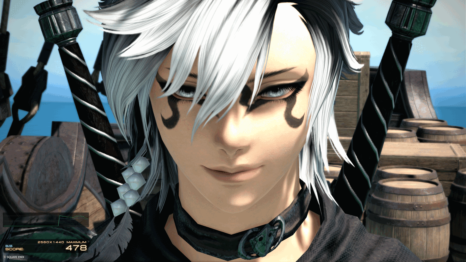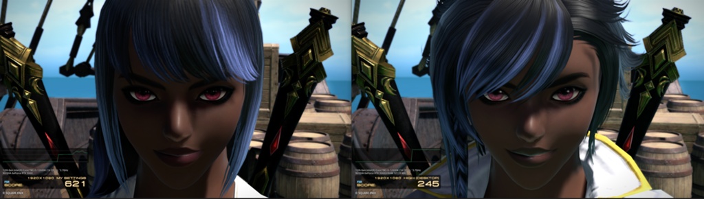 I'm more or less satisfied with how my character looks both compared to the current graphics and the first benchmark, but one thing that still bugs me is that the male viera face 1 eye 'tattoo' is still slightly less opaque than it use to be. I don't have the best comparison screenshot because I'm not currently subbed while taking a break for a few weeks, so this is the best I can do: