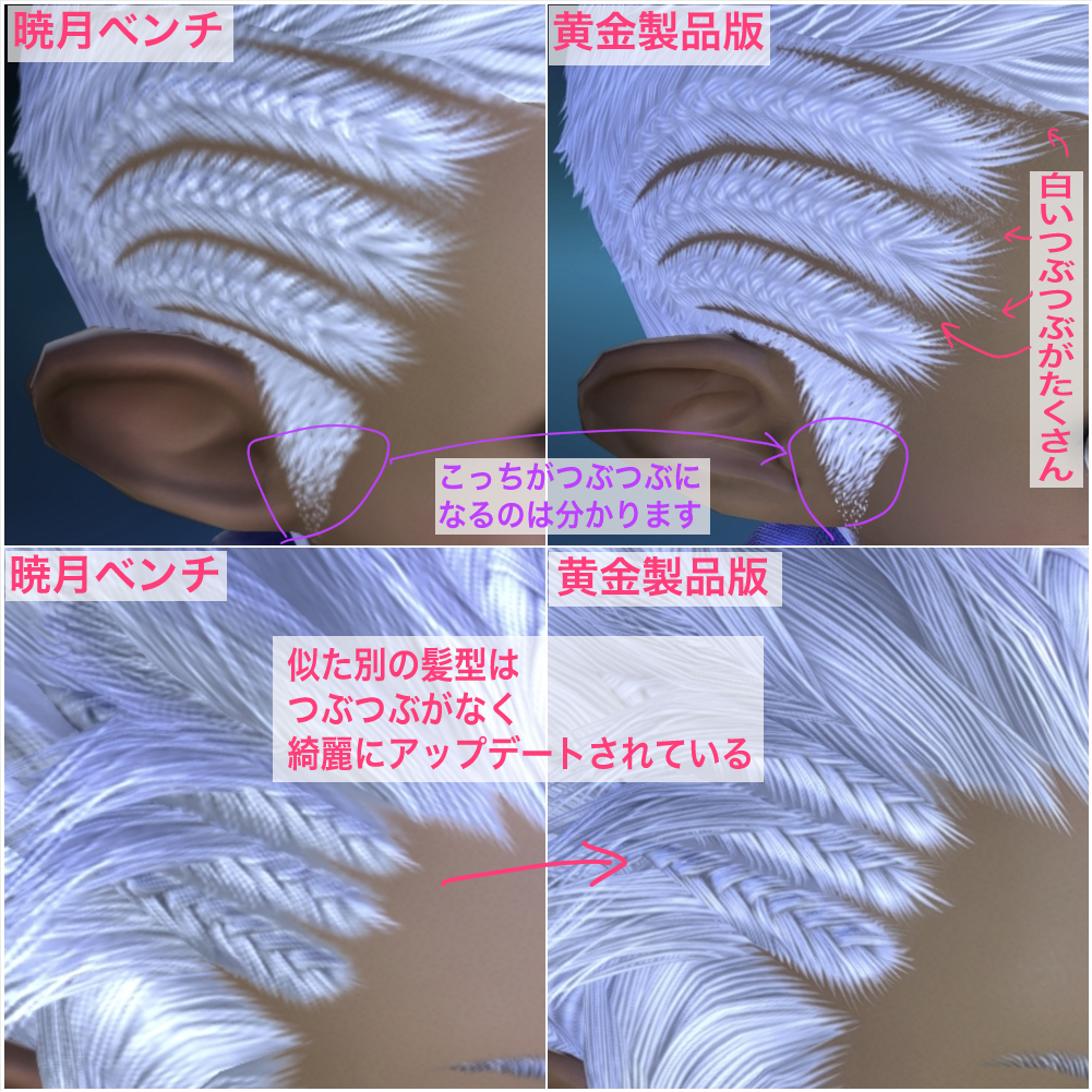 ヴィエラ♂顔タイプ1の個性の薄れ、アウラ♀顔タイプ2の口の大幅な変化・ララフェルの鼻の大幅変更・ミコッテ♀顔タイプ4の口の端のシワ、唇の形変更・ヴィエラ♀の表情の変化・全体でみられる唇の一文字化と横幅縮小・おちょぼ口で不自然に動く口・エレゼン♂♀のクマ・様々な種族の口角つり上がり問題・一部種族の一部顔タイプのヒゲが透ける問題等々…書ききれません。