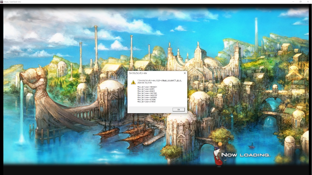 ②メインクエをやりにオールドシャーレアンに行ったところ、最初のメインクエイベント中にエラー表示もなくクライアントがスッと落ちる。