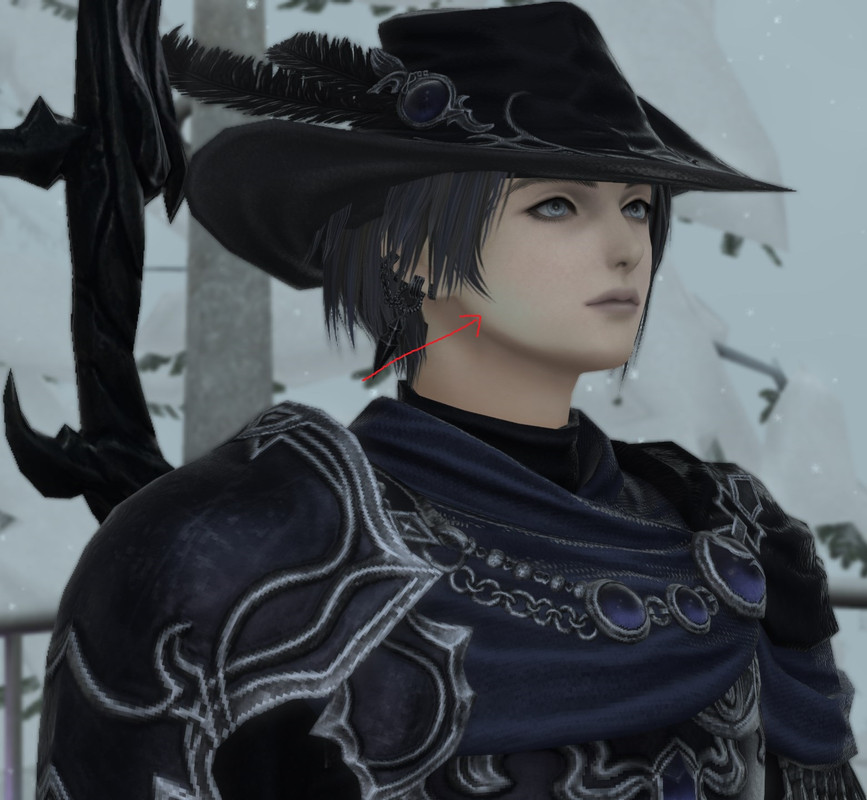 this was taken in lapis manalis, you can see her skin is inconsistent and has odd greyness on the sides of her face. it can also be seen in cutscenes.