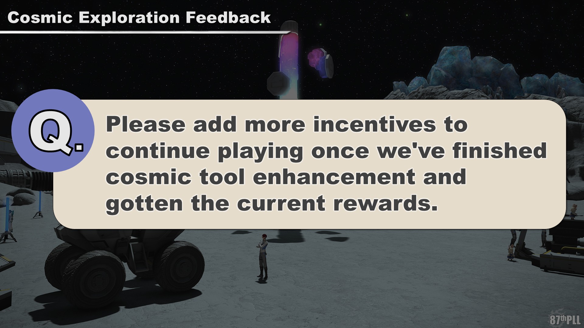To address this, we're creating additional rewards and new methods of obtaining them; their specifications have mostly been defined and should be ready by the next stage of Cosmic Exploration. We'll also be referencing your feedback when we consider what sort of rewards to add.