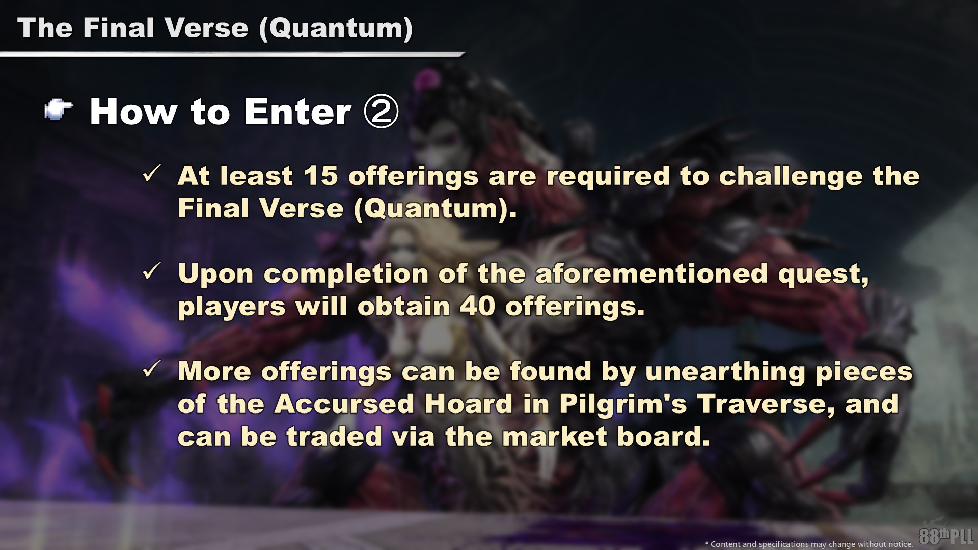 This upcoming step will be completely different from the last, but based on the feedback we received, we've tried to adjust the overall quests to feel a bit easier than what we originally envisioned based on past weapon enhancement quests.