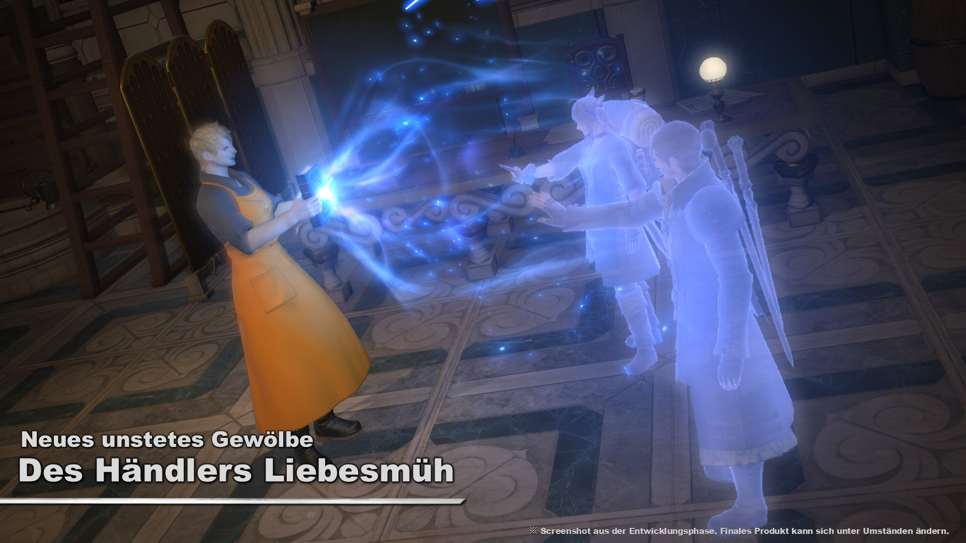 Auf dem ersten Screenshot ist der Eingangsbereich zu sehen. Yoshida hat im letzten Moment noch Anpassungen an der düsteren Beleuchtung beauftragt, weshalb die endgültige Version unter Umständen etwas anders aussehen wird. Die Geschichte, die euch in die Nebeltrift führt, müssen unsere Krieger des Lichts selbst erleben, aber wir können euch versprechen, dass sich eure Umgebung ganz schön wandeln wird!