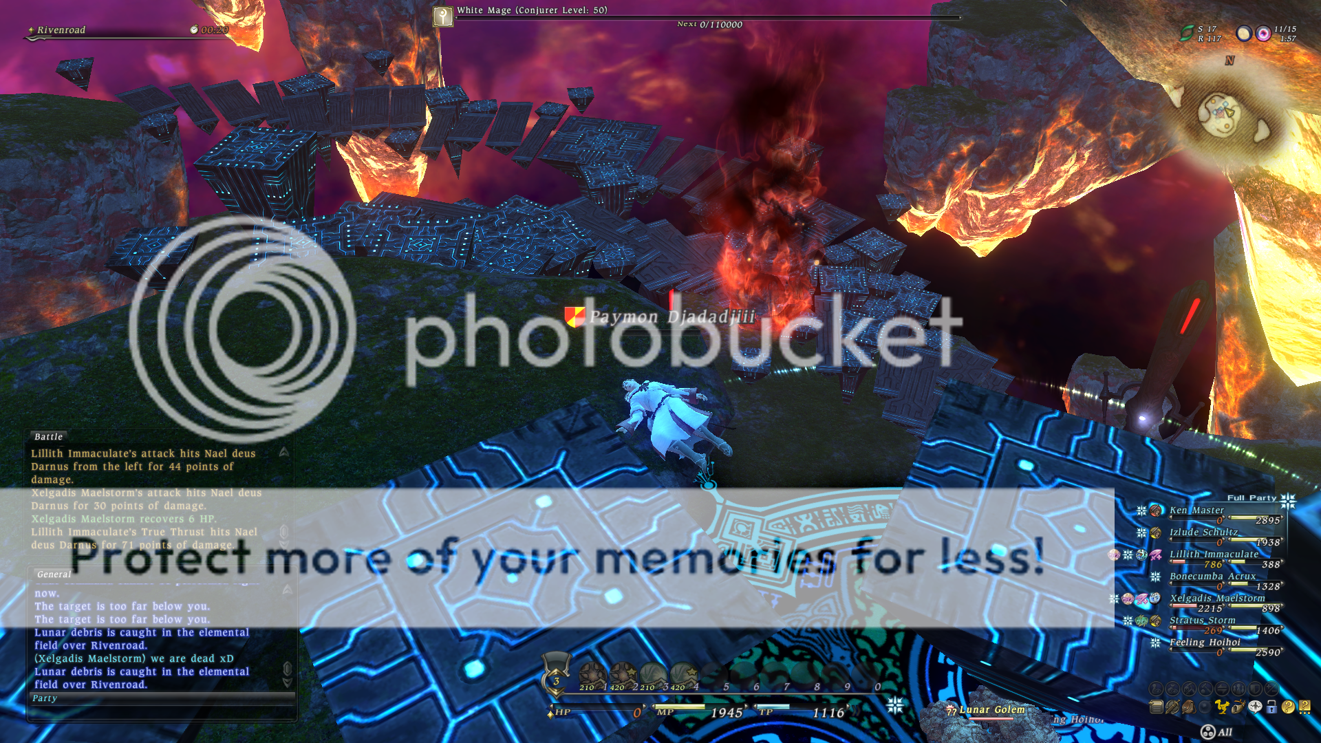I didn't think that my best memories were at the end of Eorzea but it turns out they are. Many people couldn't give up playing even if everything they did wasn't saved. It shows true commitment from dedicated fans. I chose this picture for many reasons. Everyone is fighting together and enjoying their last days. Also, because I am using my first level 50 class and using the most beautiful weapon skill ever!